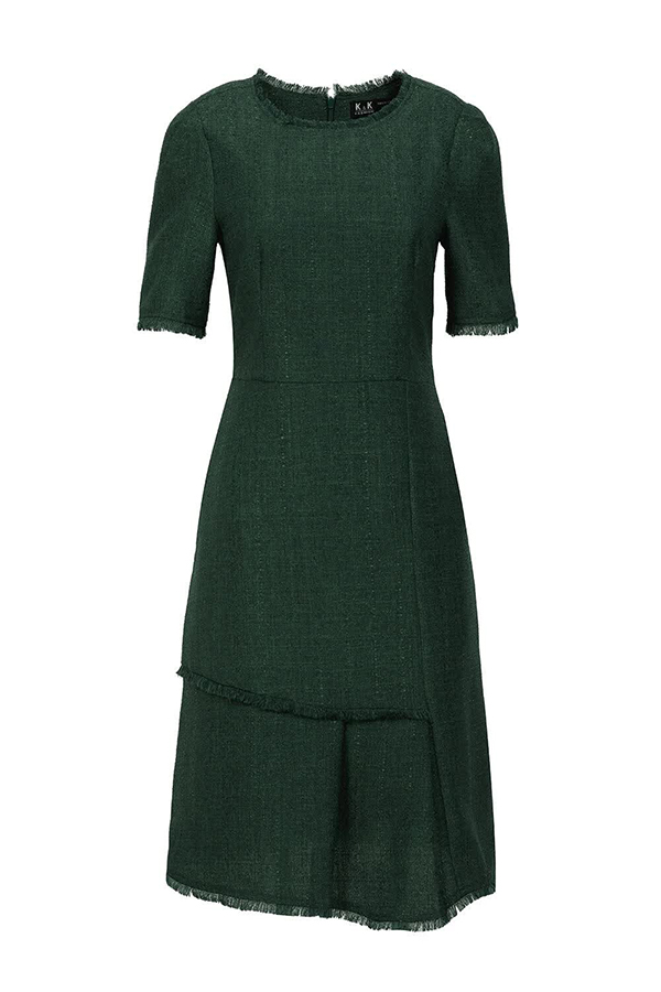 Đầm chữ A cổ tròn tùng cách điệu