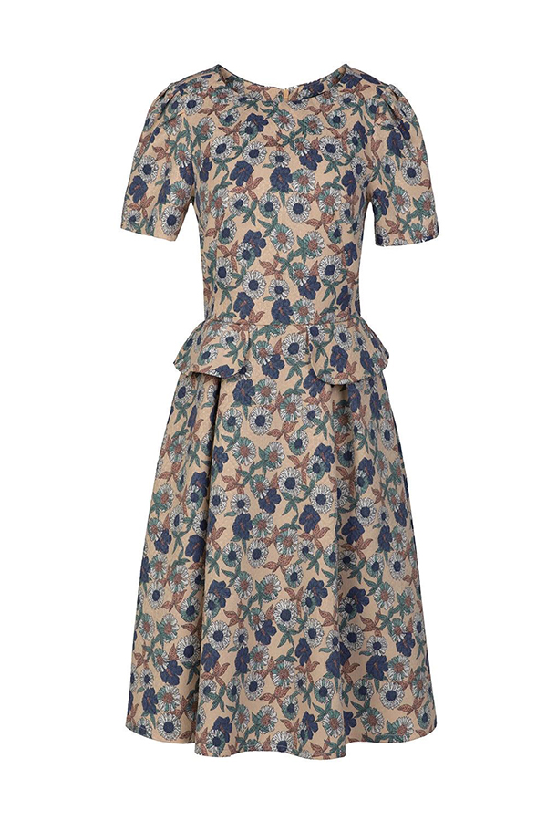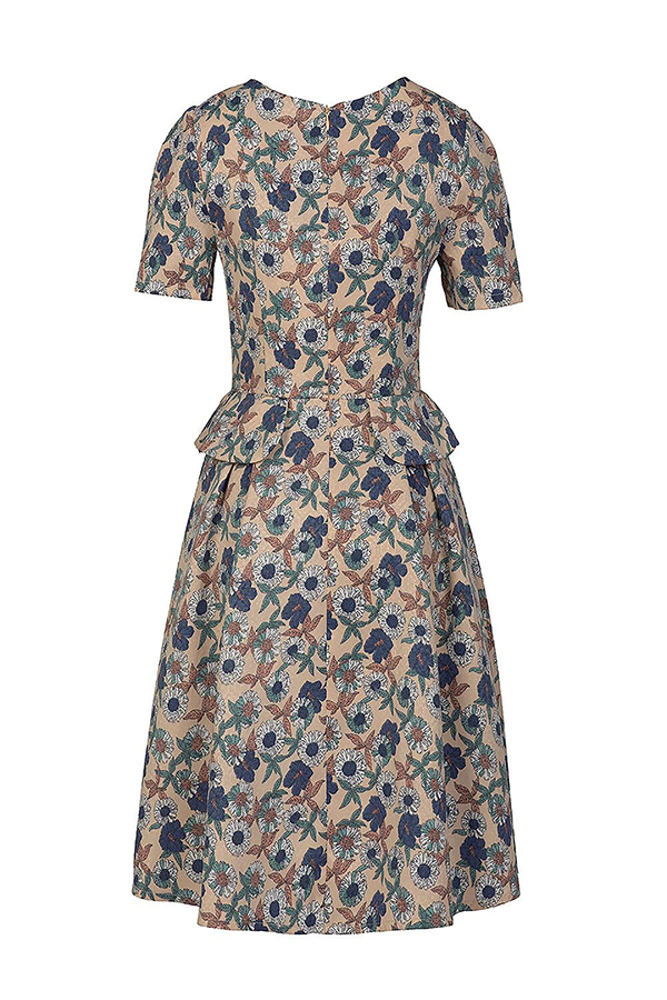 KK93-21 thu hút nhờ họa tiết hoa nền nã, cuốn hút rất riêng biệt. Thiết kế peplum hiện đại giúp che đi khuyết điểm vòng 2 kém thon gọn. Phần chân váy hơi phồng nhẹ, phần tay lửng vừa trẻ trung, duyên dáng mà vẫn vô cùng đứng đắn, phù hợp với những cô nàng công sở trẻ trung nhưng vẫn muốn thanh lịch chỉn chu chốn văn phòng.